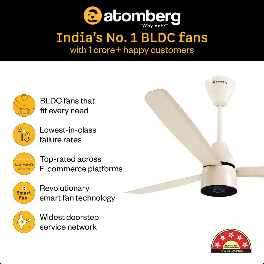 At its core is the Energy-Saving Atomberg Renesa Fan (Brushless DC) motor. This makes it super energy-efficient, using much less electricity than older fans. This means real savings on your monthly power bills. Even though it uses less power, the fan still delivers excellent cooling, making sure your comfort isn't compromised.
