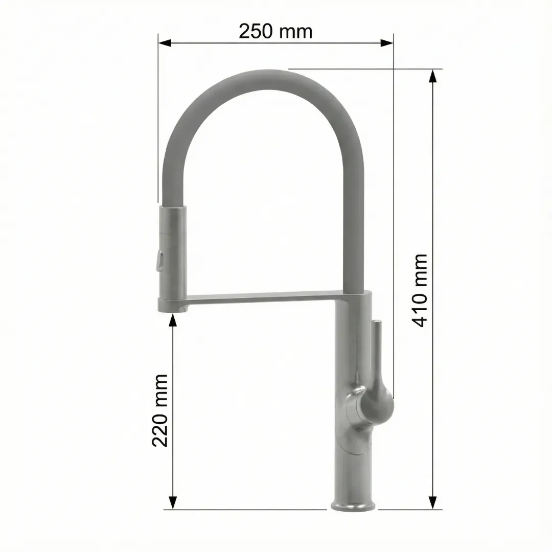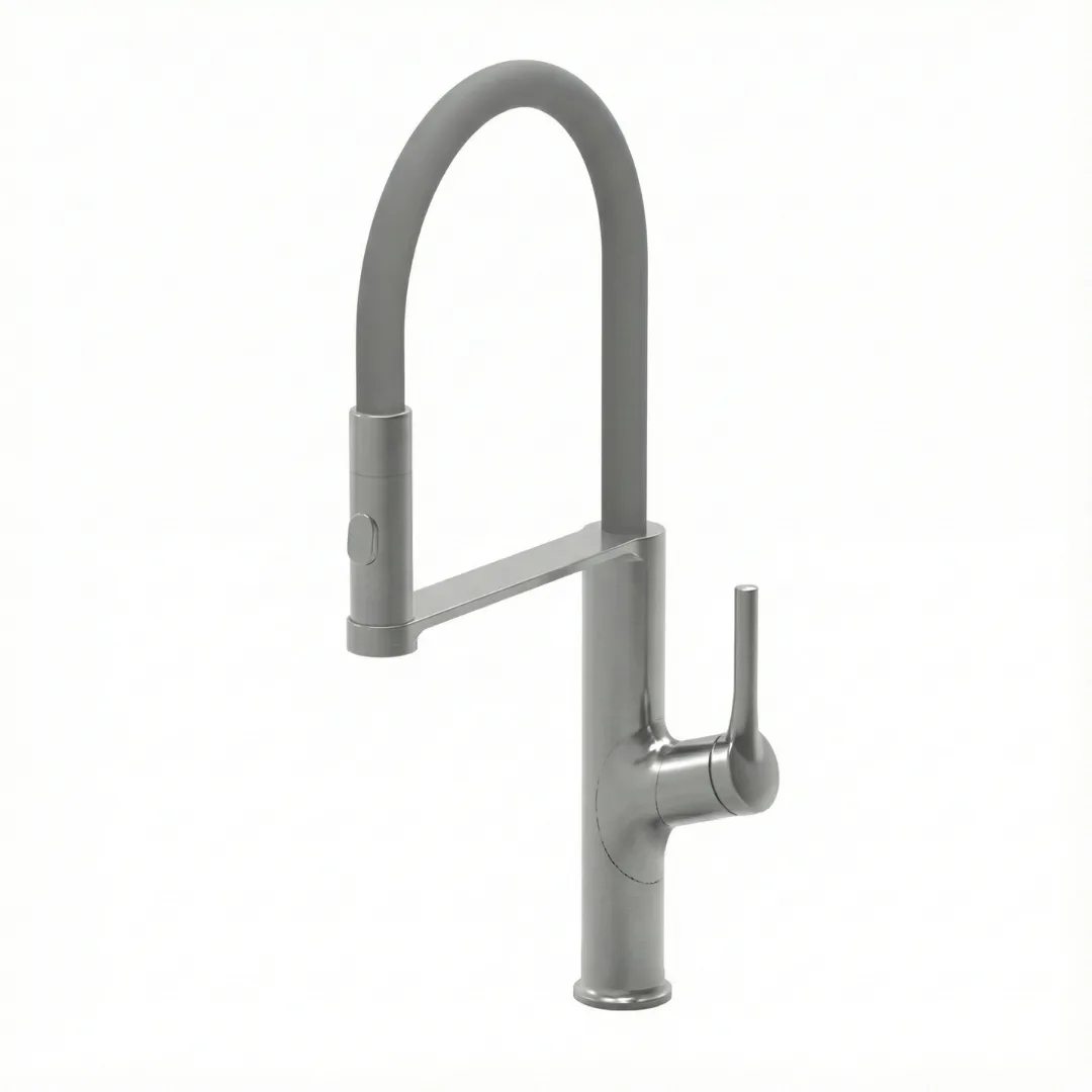 - Flexible "Grey Touch" Silicone Spout: The standout feature is the durable grey silicone hose arm that is fully flexible, allowing you to bend and maneuver the spout to direct water exactly where you need it.