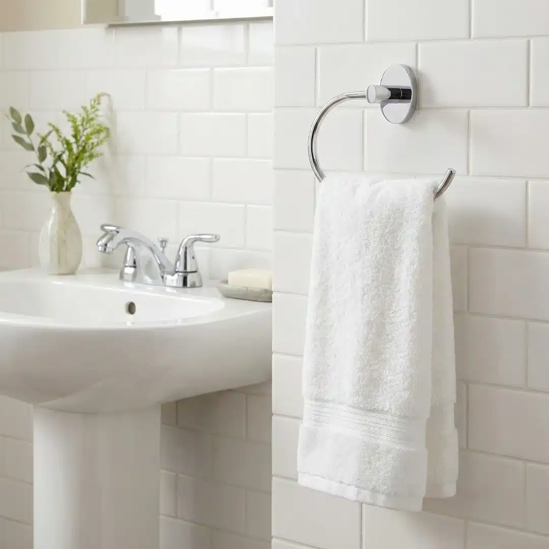 This napkin ring provides a stylish and convenient way to display hand towels, keeping them neatly presented and easily accessible. Its minimalist design effortlessly complements a wide range of decors, making it a reliable and aesthetically pleasing fixture that adds a touch of sophisticated organization to your home.