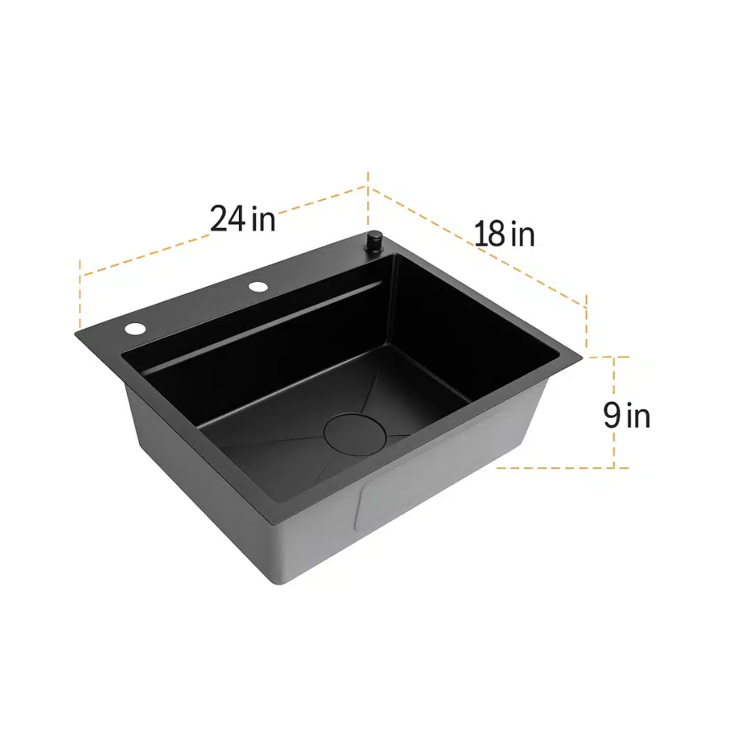 SYLUX Kitchen Sink Rapid SL873| 304 Black Finish 24x18x9 With Accessories Soap Dispenser ,Cutting Board, Triangle Tray
