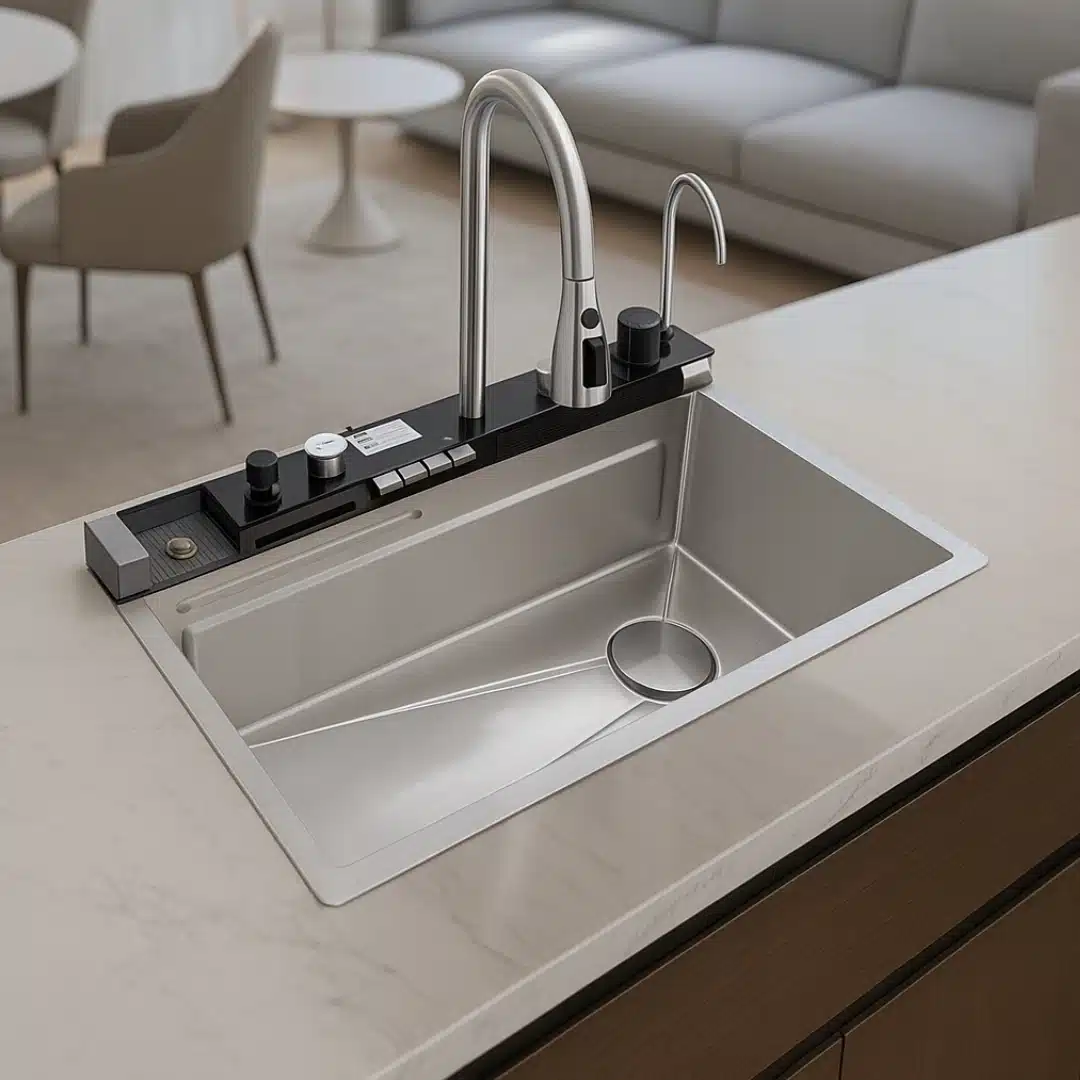| Special Features | Deep 9-inch bowl for large utensils Over-the-sink workstation capabilities (implied by cutting board/tray placement) |