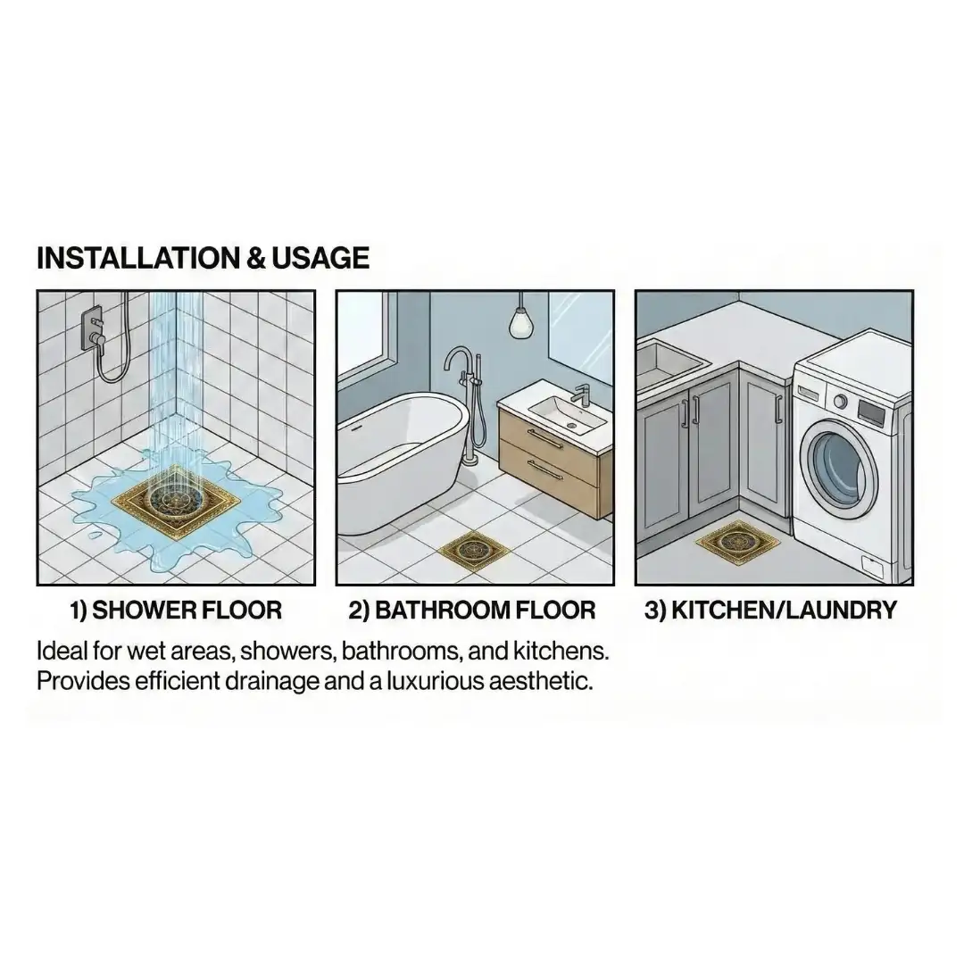 - Application: Bathroom & Floor Drain Cover